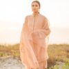 Tea pink dyed Organza dupatta finished with nostalgic multi-coloured beads.