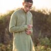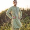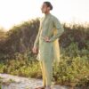 Relaxed fit kurta with intricate crochet details on the chest paired with loose fit shalwar for a curious learner experience.