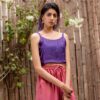 Ankle high cropped Palazzo pants with pockets complimented with Rose Lemonade embroidery.