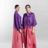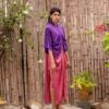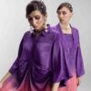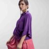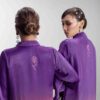 Hand dyed ombre shirt with meticulous pleating to imitate a Lemonade swirling – cutaway collar, bell sleeves and an adjustable button down slits on both sides complimented with Rose Lemonade embroidery at the back.